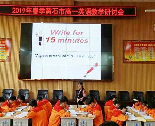为加强高中英语教学研究和交流,做好高一应对新高考教学工作,黄石教科院,阳新教研室,大冶教研室联合阳新一中、黄石二中“李朝辉工作室”于2019年5月14日在我校举办了2019年黄石市高一英语写作教学研讨活动。阳新一中纪检书记李雁鸣亲临活动现场,关注年轻教师的专业成长。