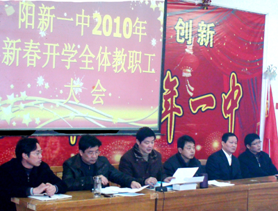 “雄关漫道真如铁,而今迈步从头越”,让我们戮力同心、携手并进,在新的历史起点阔步前行,以辉煌的业绩和无愧的心态迎接阳新一中百年华诞的到来,为建设四心校园争创省级示范学校再谱新的华章!