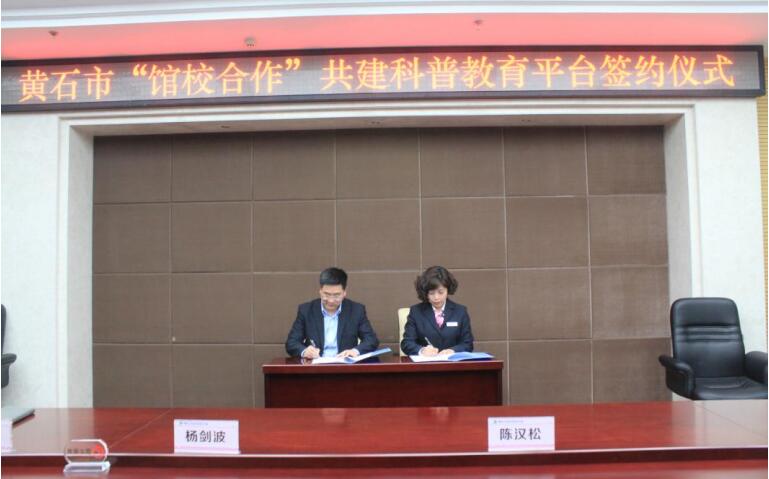 (阳新一中校长明道树同志跟黄石市科技馆签订“馆校合作”协议)