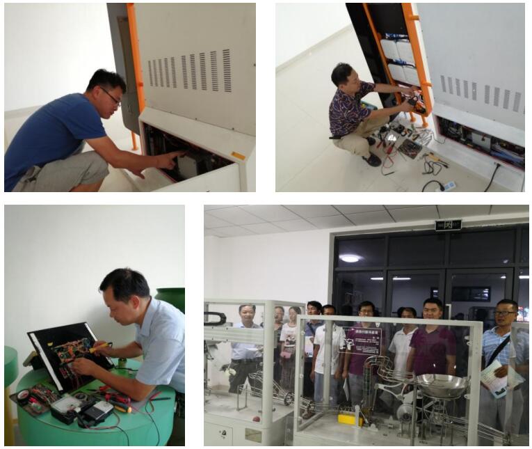 (柯贤根主任更新智能展教设备软件参数,朱建华老师检修巡展卫星定位系统和部分损坏展品、排除安全隐患并带领物理组部分老师参观学习,以便更好地为学生答疑解惑。)