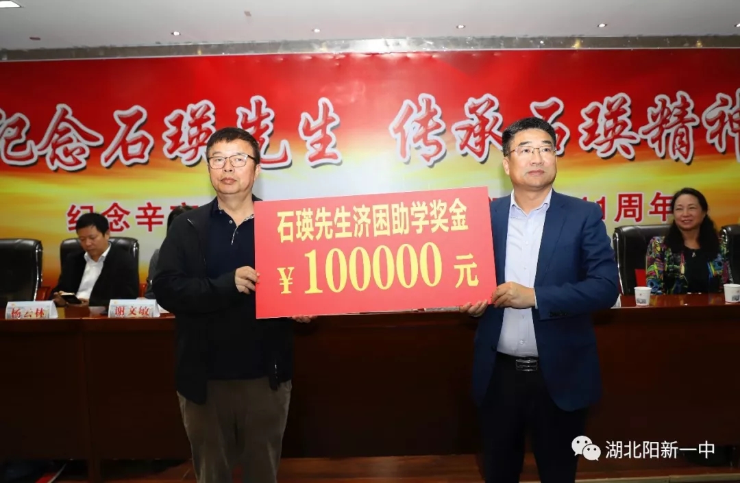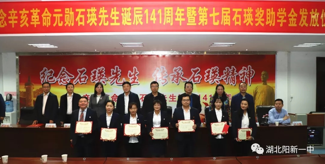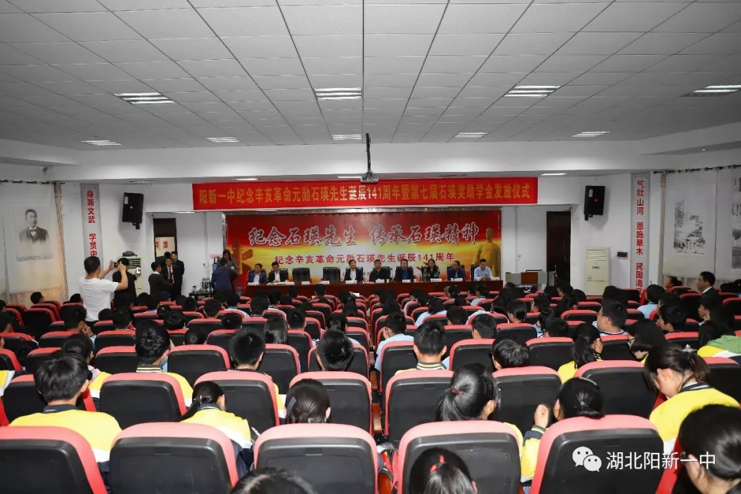 在全场高唱阳新一中校歌中,阳新一中纪念石瑛先生诞辰141周年暨第七届石瑛济困助学系列活动落下帷幕。