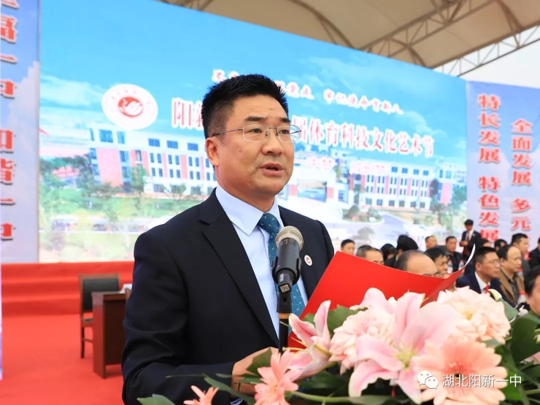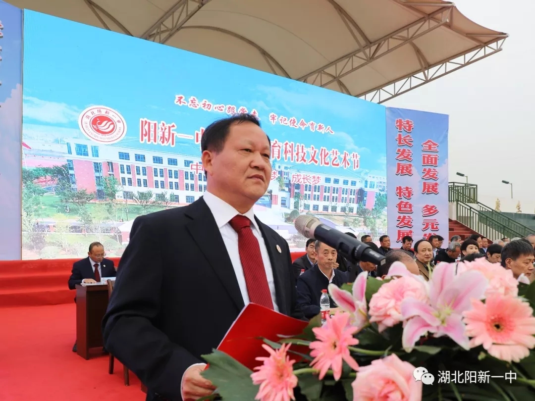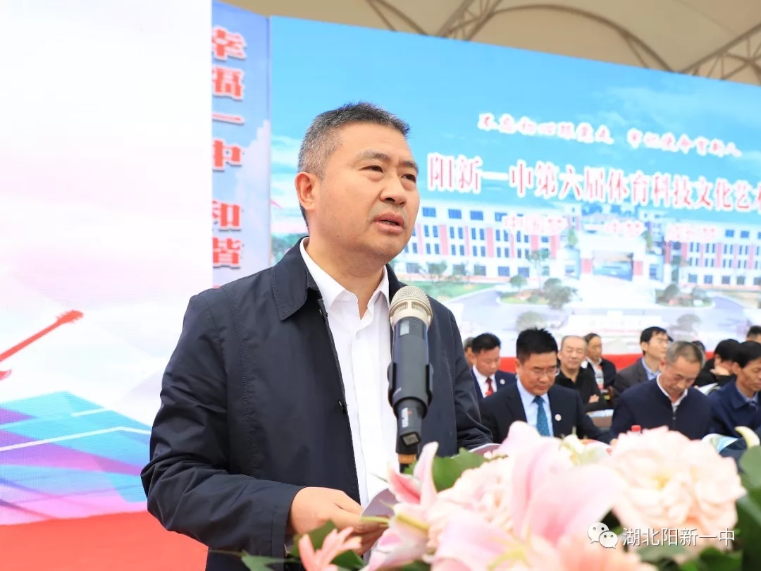 省科协副主席余军在讲话中指出阳新是一块红色土地,阳新一中是一所百年老校,他充分肯定了阳新一中的办学理念和教育教学质量。并衷心祝愿阳新一中早日实现“全市做标杆,全省起示范,全国有影响”的荆楚名校、全国文明校园的奋斗目标!预祝阳新一中第六届体育科技文化艺术节圆满成功!