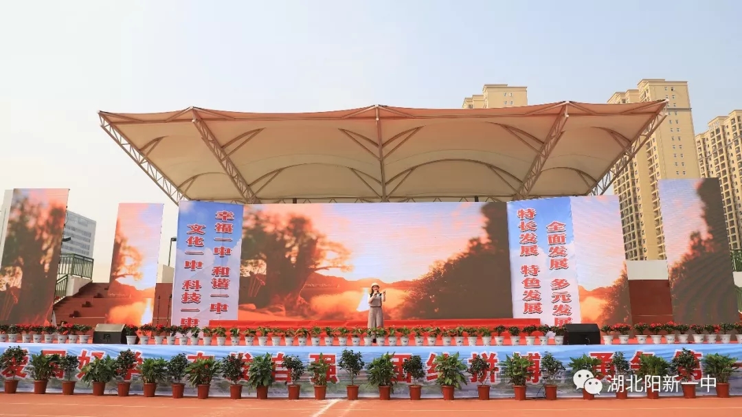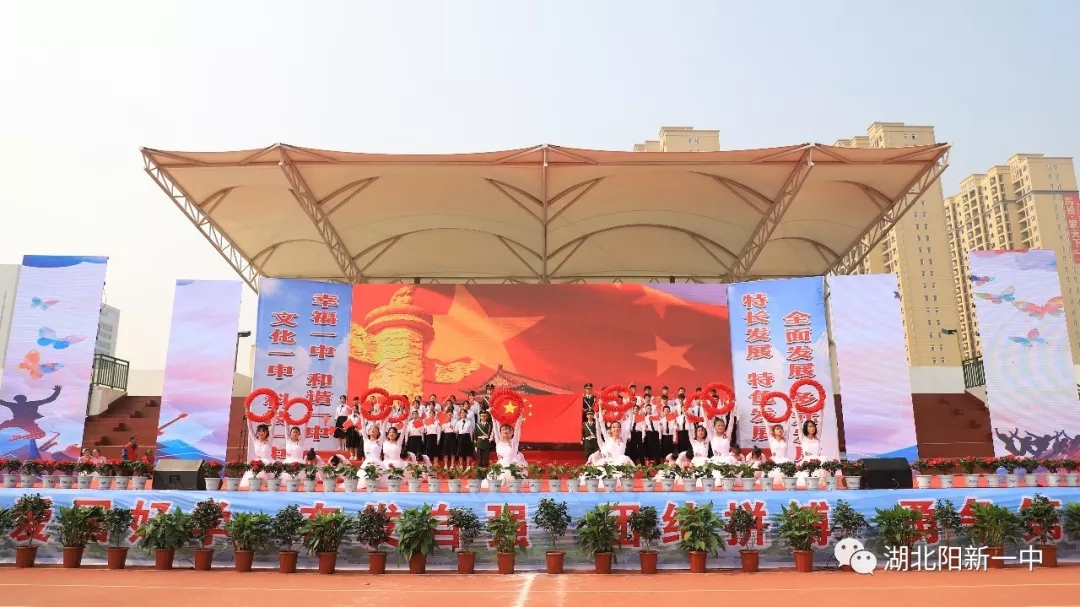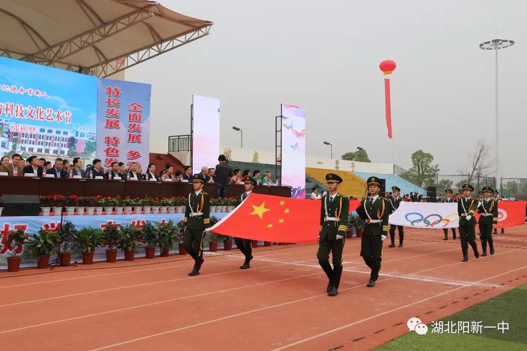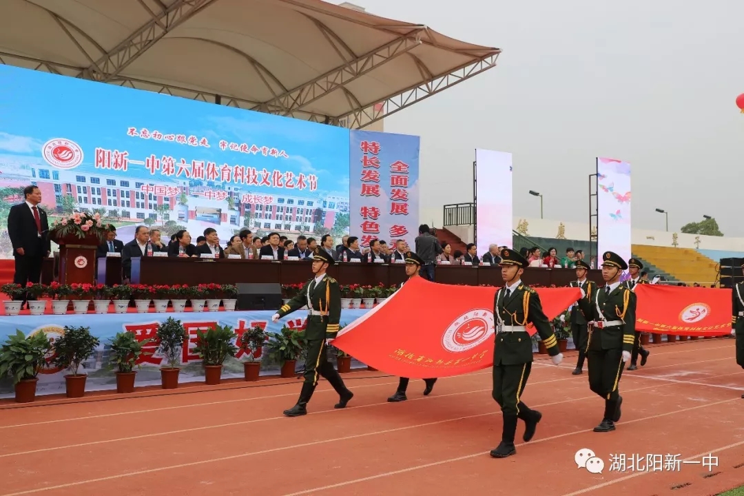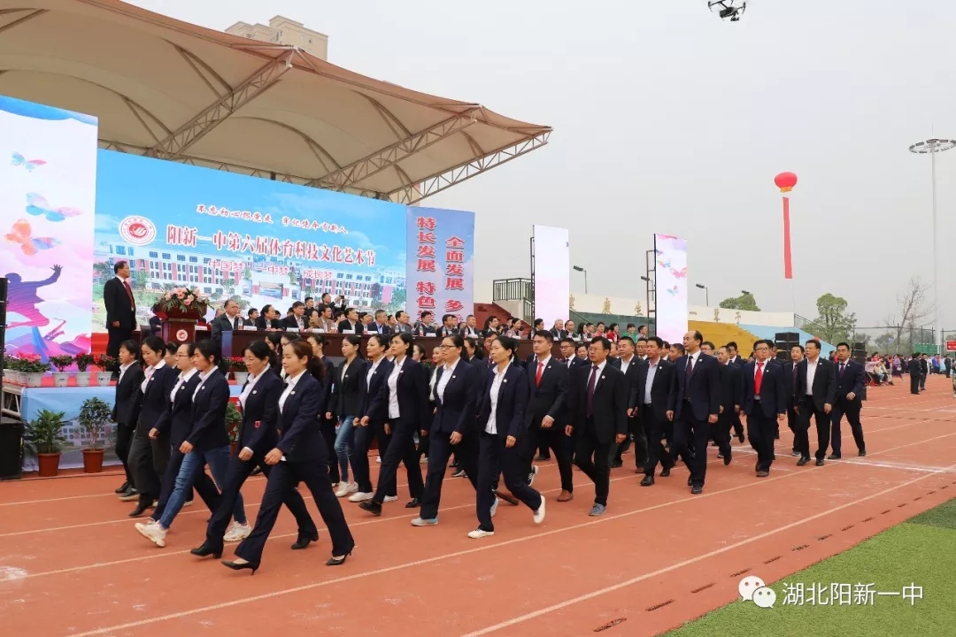 当天9时整,阳新一中新校区运动场鼓乐震天,新老校区全体师生汇聚在这里。国旗、五环旗、校旗、会旗、吉祥物、标语、彩旗、气球、志愿者、各级部方阵依次入场开幕式在庄严的升国旗仪式中拉开帷幕。