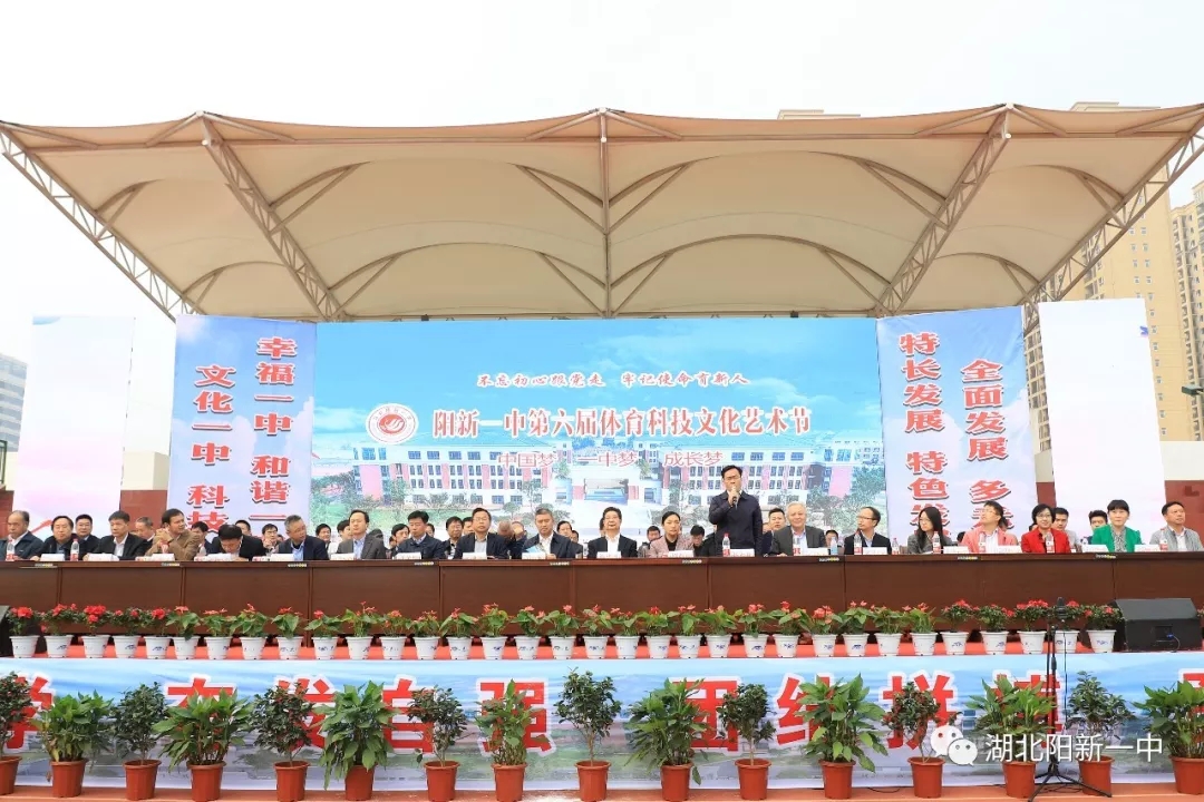 县教育局副局长何衍良在讲话中肯定了阳新一中近年来在体育、科技、文化、艺术和教育质量等方面取得的优秀成绩,赞扬了一中在阳新教育中的龙头示范作用,是阳新千年儒学的传承者、教育希望的承载者、教育改革的先行者、教育形象的塑造者,同时希望阳新一中全体师生再接再厉,为阳新、黄石教育事业做出更大的贡献,并祝愿阳新一中第六届体育科技文化艺术节圆满成功。