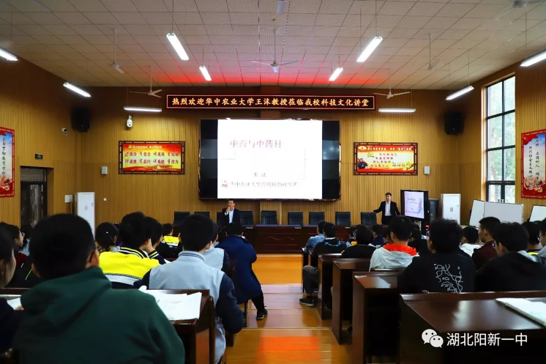 6日下午四点,华中农业大学药用植物研究所王沫教授莅临阳新一中党建讲堂,为两百多名学生送来了一堂有关中药与中药材的内容讲座,给在座学生揭开了国之瑰宝一一中药的神秘面纱。