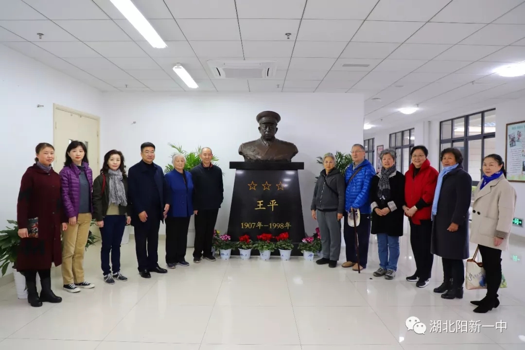 12月17日,开国上将王平将军铜像揭幕仪式在阳新一中至真楼一楼隆重举行。将军的亲属悉数参加了本次揭幕仪式。我校党委书记、校长明道树以及全体校委会成员出席了本次活动,仪式由副校长梁师稳主持。