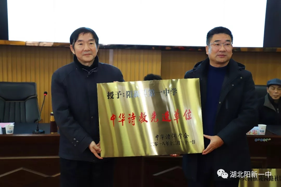 省中华诗词学会同时也向阳新县、县龙港镇、枫林镇颁发国家级“中华诗词之乡”铭牌,向县检察院、陵园路社区颁发国家级“中华诗教先进单位”铭牌。