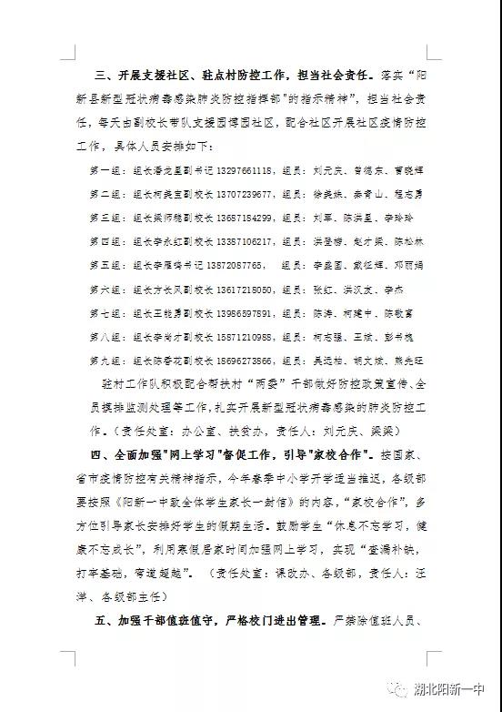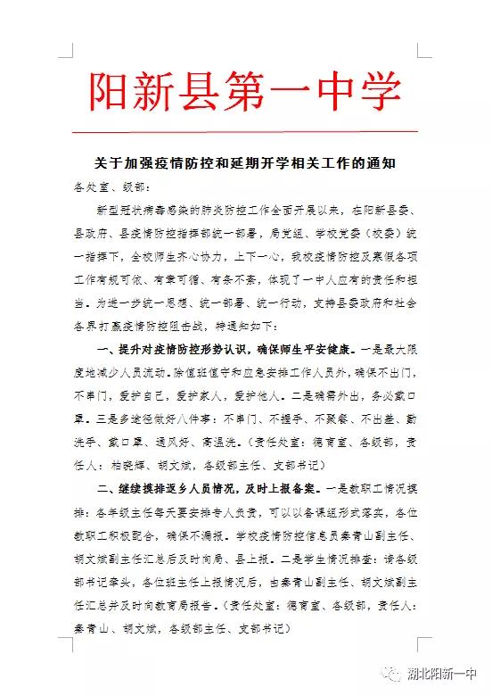 阳新一中关于加强疫情防控和延期开学相关工作的通知