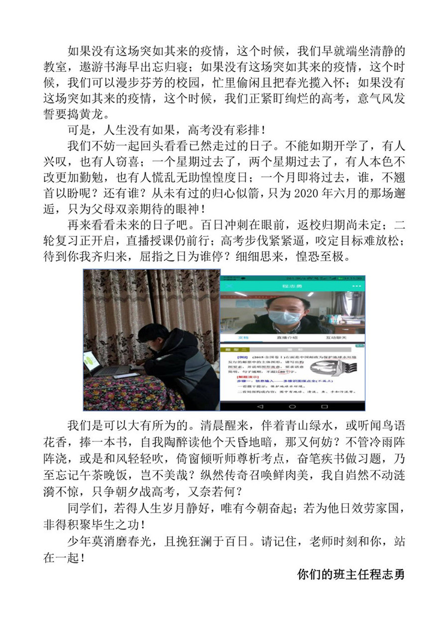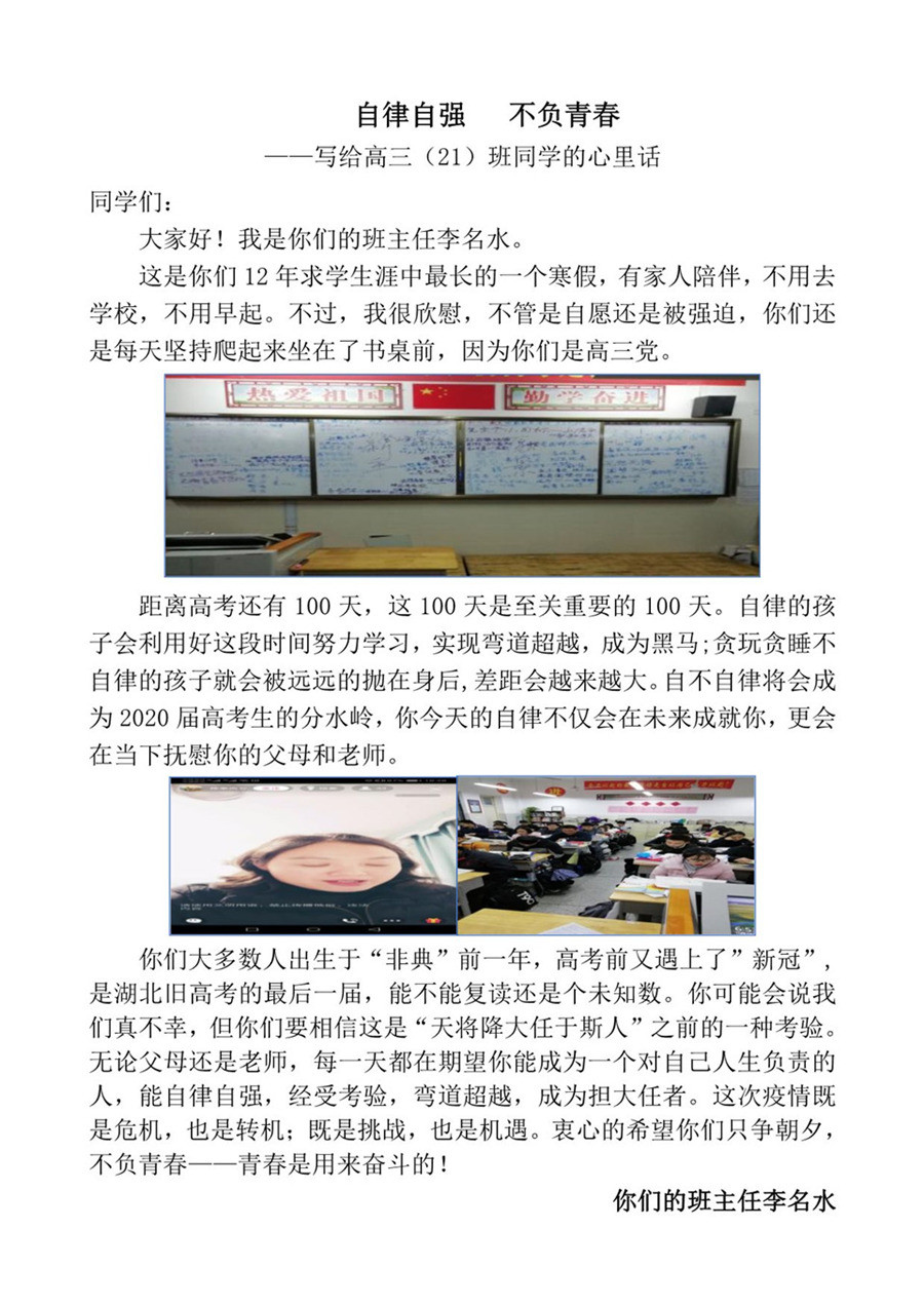 隔屏不隔爱,“语”你待花开——阳新一中高三年级1、2部班主任给学生一份特别的爱