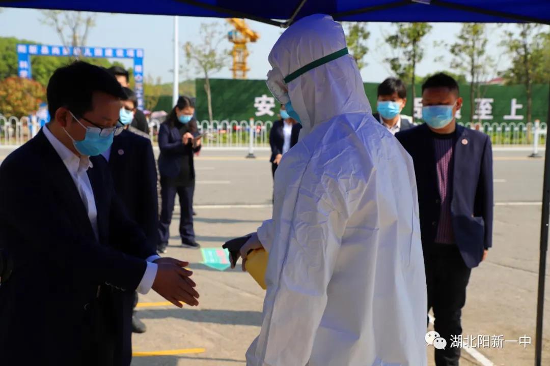 为全面提高疫情防控应急水平,做好开学前各项准备工作,确保有序、安全复学,4月9日上午,阳新一中开展2020年春季学期高三复学演练。县卫生防疫站的工作人员全程技术指导本次演练。