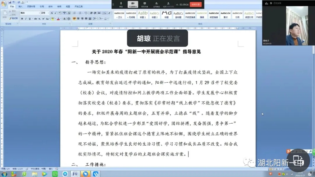 三名班主任程志勇、李鑫、李玲玲分别代表各年级汇报了开学以来的线下德育工作,交流育人心得。学生发展中心德育室主任柏晓辉、综治办主任王平心、文明办主任明建华、团委书记胡琼、女工委主任邓丽娟等分别介绍了复学德育工作开展筹备情况,从健康管理、校园封闭管理、志愿者服务、文明创建等方面作了详细解说。