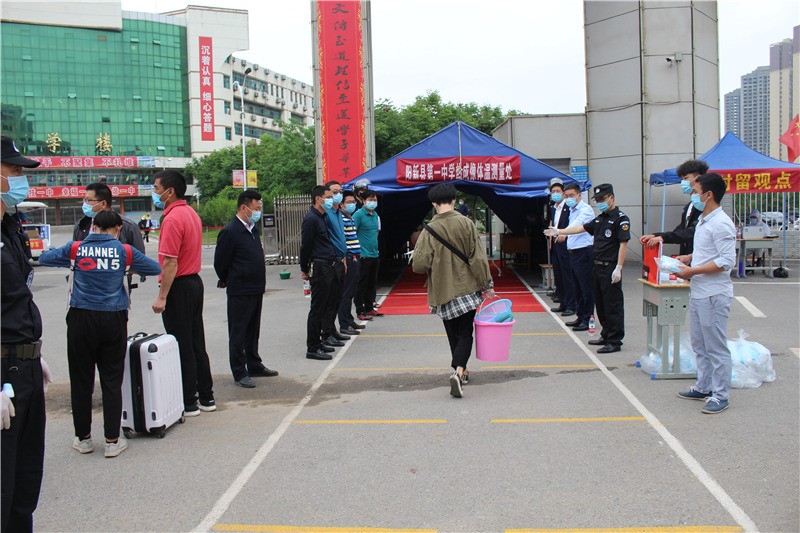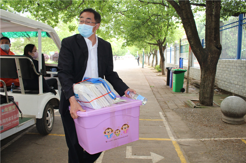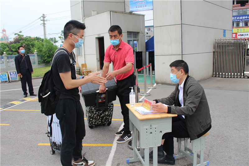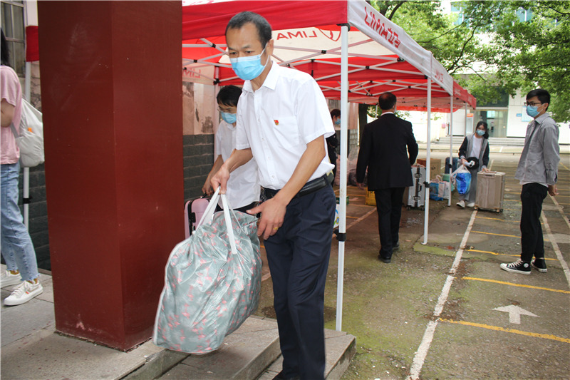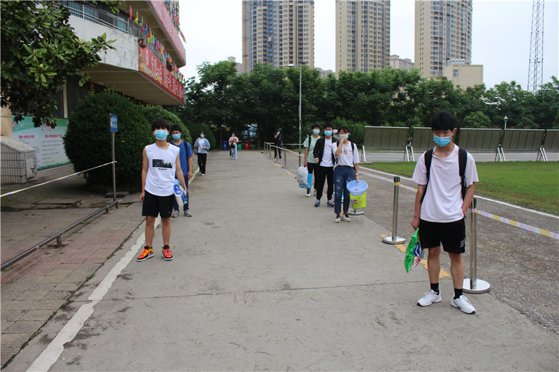 天公作美,活力无限。高三学生喜气洋洋,昂首阔步进校园,给美丽的校园增添了无限的生机和活力,虽然戴着口罩,却难掩脸上的笑容和内心的狂喜。入校门秩序井然,根据规定,疫情防控期间,学生家长不得进入校园,学校租用两辆观光车协助学生转运行李,党员教师志愿者帮助学生看管、搬运行李。同学们保持一米以上距离,由热成像体温测量处测量体温正常后,递交健康登记卡和健康安全承诺书,洗净双手后进校园。入寝安排有序,在公寓门口经物业管理员测温正常后,学生入寝,按分配好的4人间入住。就餐有条不紊,中餐时间到了,同学们排队有序就餐,用餐前排队洗手,排队取餐,间隔就座。下午,同学们进教室上课,原有的11个班被分成22个班,每个教室不超过30人,班主任给学生讲开学第一课,重点讲健康安全知识。下晚自习了,学生错时放学,排队测温入寝,李尚才副校长带领值日团队督导学生有序就寝。