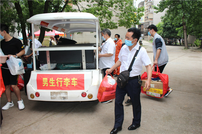 党建引领,先锋校园。在团委书记柯志强的组织下,成立党员教师志愿者队伍,服务学生。他们有中层干部刘良蔚、姚秋平等,党员先锋董明发、李丽君等,先进教师江晓慧、向锦霞等。一大早,志愿者队伍便来到学校,主动作为,合理分工,坚守在校门口、学生公寓等关键站点,服务学生,维持纪律,帮助学生搬运行李。老党员董明发老师年近六旬,头发花白,精神矍铄,乐于助人,帮助学生搬运行李,累得汗流浃背,依然喜笑颜开。
