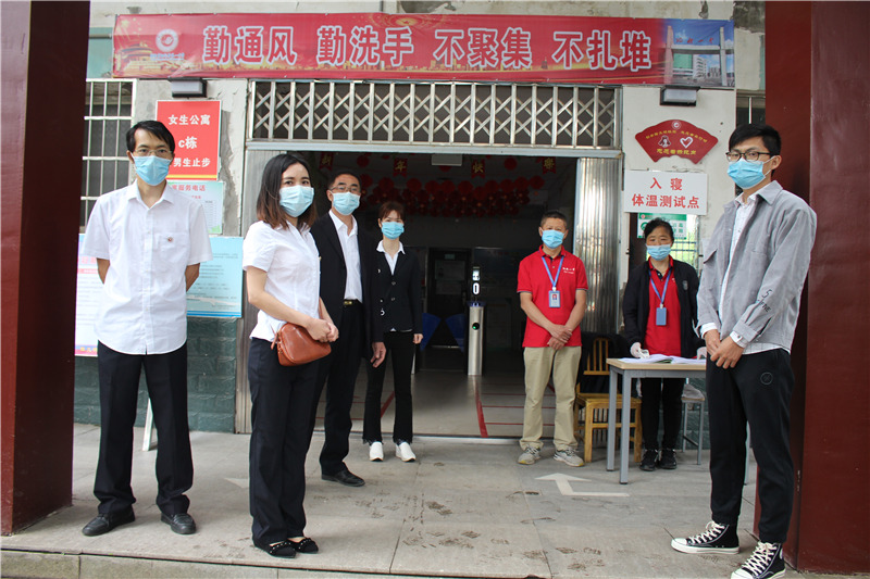 夏花灿烂,绿意满园。2020年5月6日,阳新一中(老校区)党员教师志愿者助力安全有序开学,高三年级11个班(小班22个班)600多名学生错时陆续返校上课。阳新一中党委书记、校长明道树,党委委员、副校长方长风率领老校区校委会领导、全体中层干部在校门口热烈欢迎归来的高三学子。高三年级领导组织各班主任做好接待学生工作。安保、物业、食堂工作人员坚守岗位,服务学生。开学工作得到了上级领导的高度重视,公安局领导,副县长蔡暖心,县政府办副主任彭书桃,教育局局长马哲强,教育局党组成员、县政府教育督导室副主任汪承权,教育局体卫艺股股长柯晓慧等莅临我校督导开学工作。