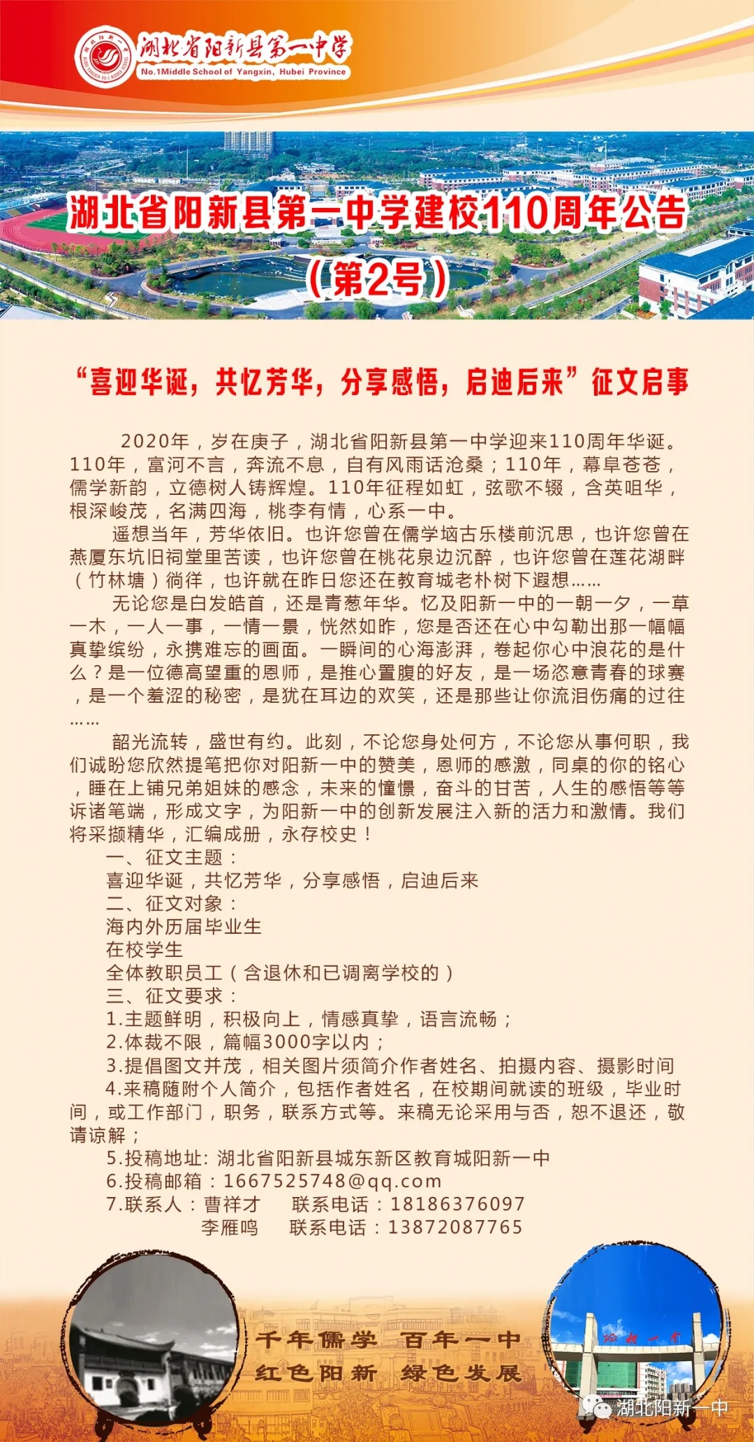 湖北省阳新县第一中学建校110周年公告(第2号)