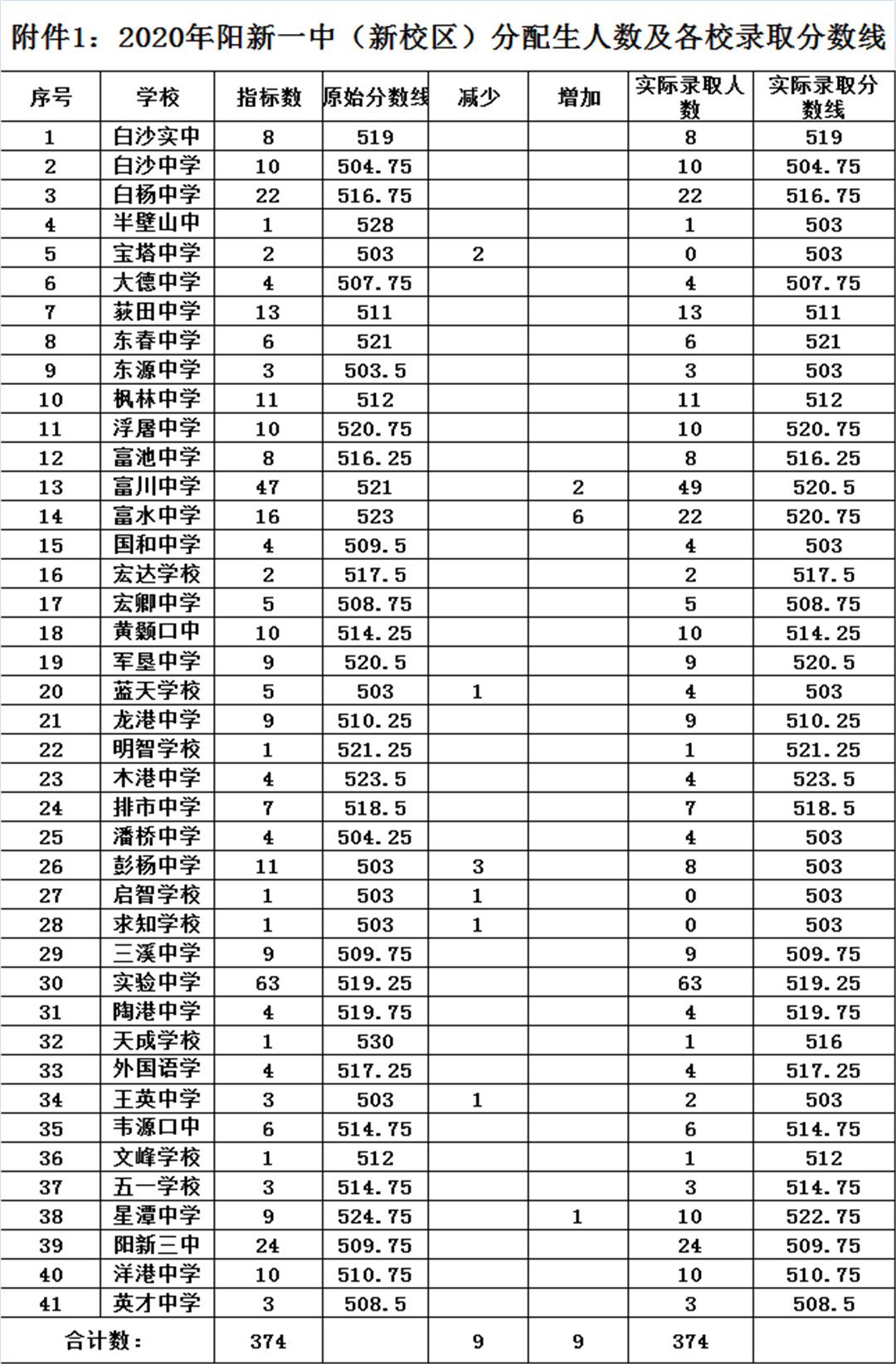 关于下达2020年阳新县高中阶段学校招生计划的通知