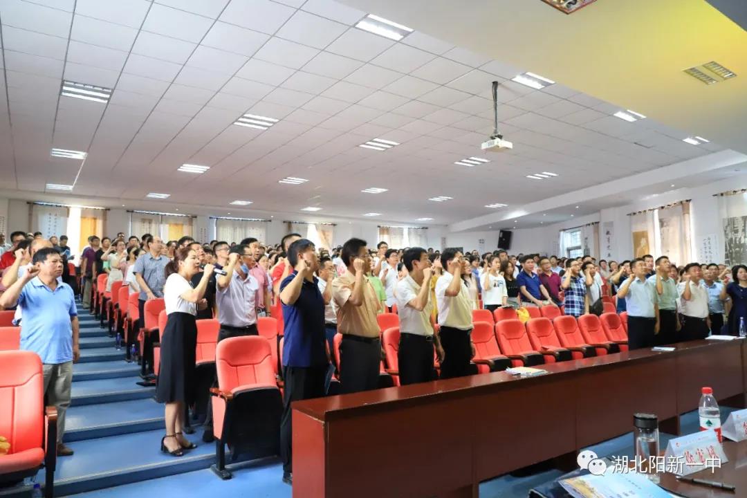 “忠诚人民教育事业,履行教师神圣职责,贯彻国家教育方针,全面实施素质教育,热爱学生,为人师表......”铮铮誓言响彻校园,也拉开了以“对标新高考、推行新机制、造就新教师、作出新业绩”为主题的阳新一中教育集团2020年暑期教师集训的序幕。