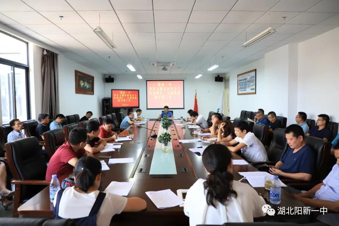 9月7日下午,阳新一中在三楼会议室召开了2020-2021学年度第一次行政例会。学习《湖北省学校安全工作条例》,推进新学期学校各项工作。全体中层以上干部参加会议,学校党委书记、校长明道树主持会议。