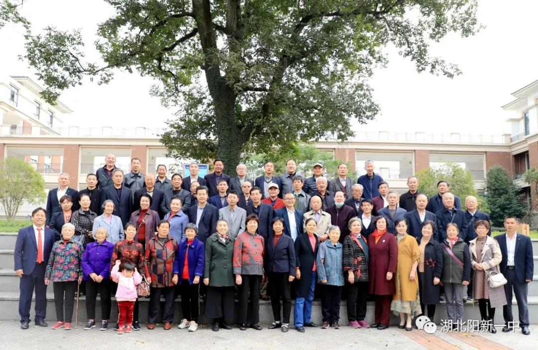 会后,参加活动的领导和老教师们一起在朴树前留影纪念。