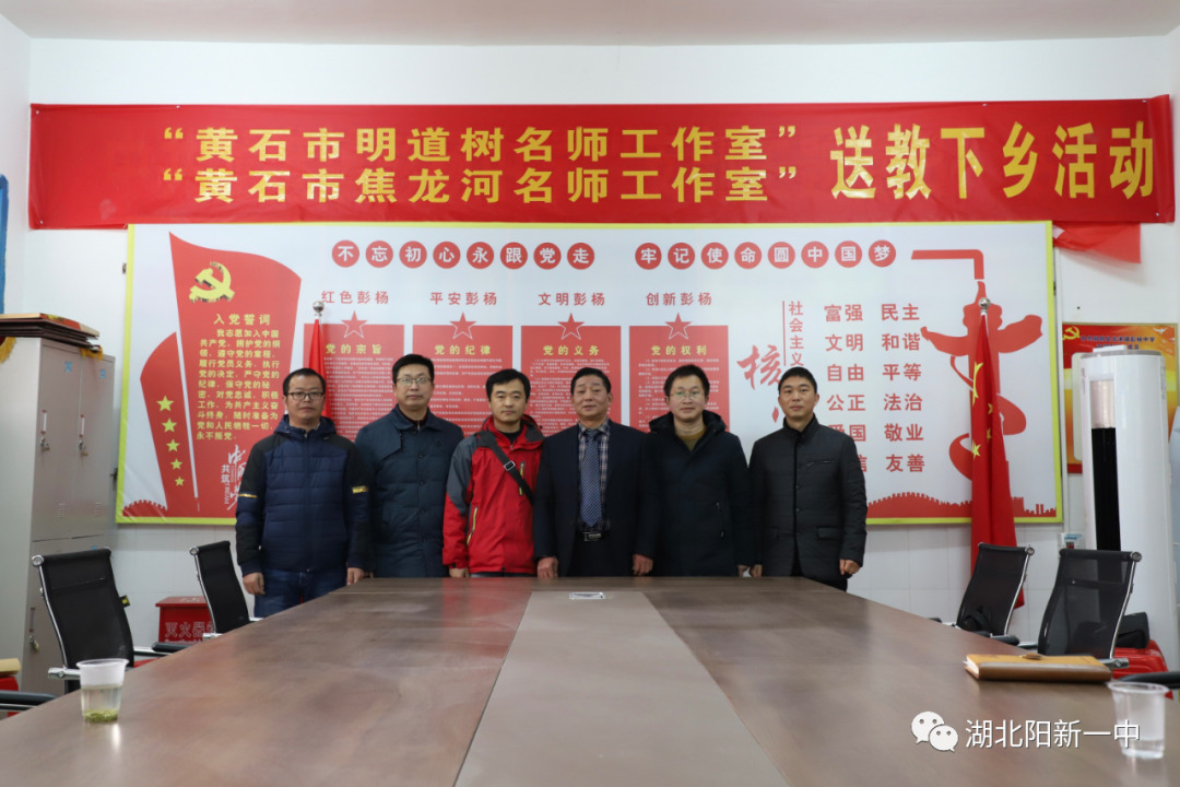 17日,黄石市焦龙河名师工作室送教龙港镇彭杨中学。在名师工作室主持人焦龙河的带领下,名师工作室成员王鹏、童德江、王民、王定岁,曾俊杰参与了活动。