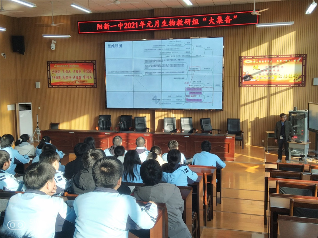 1月14日上午,为了进一步推进学科组集备集研,促进教师的专业成长,助力高三备考,阳新一中生物教研组在明道楼报告厅进行“大集备”。全体生物教师参加活动,蹲点校领导副校长徐宏斌参加活动并讲话。活动由教研组长卢忠典主持。