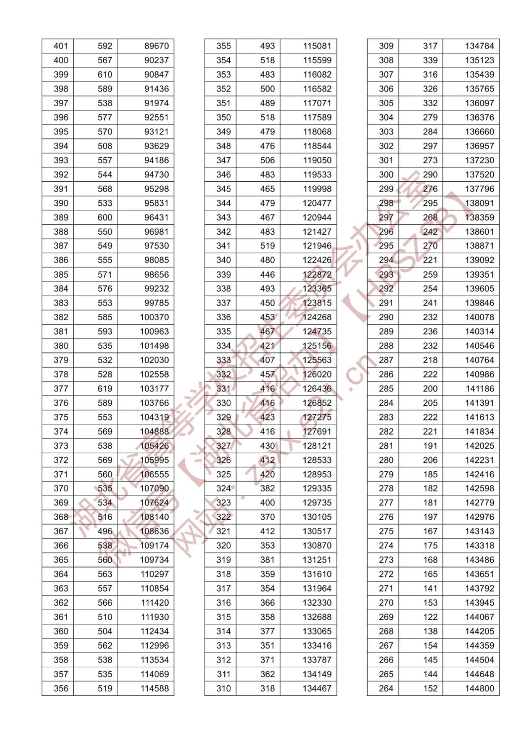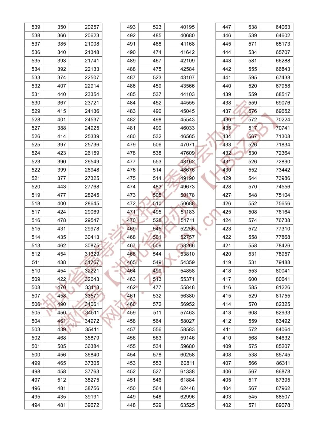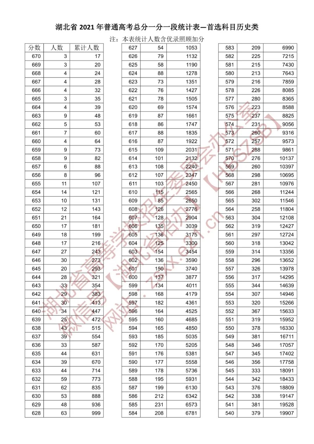 湖北省2021年普通高校招生排序成绩一分一段统计表(首选历史)