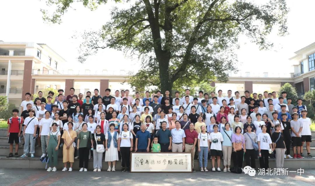 奖助学金发放结束后,明道树校长和全体资助学生一同在古树下合影留念。