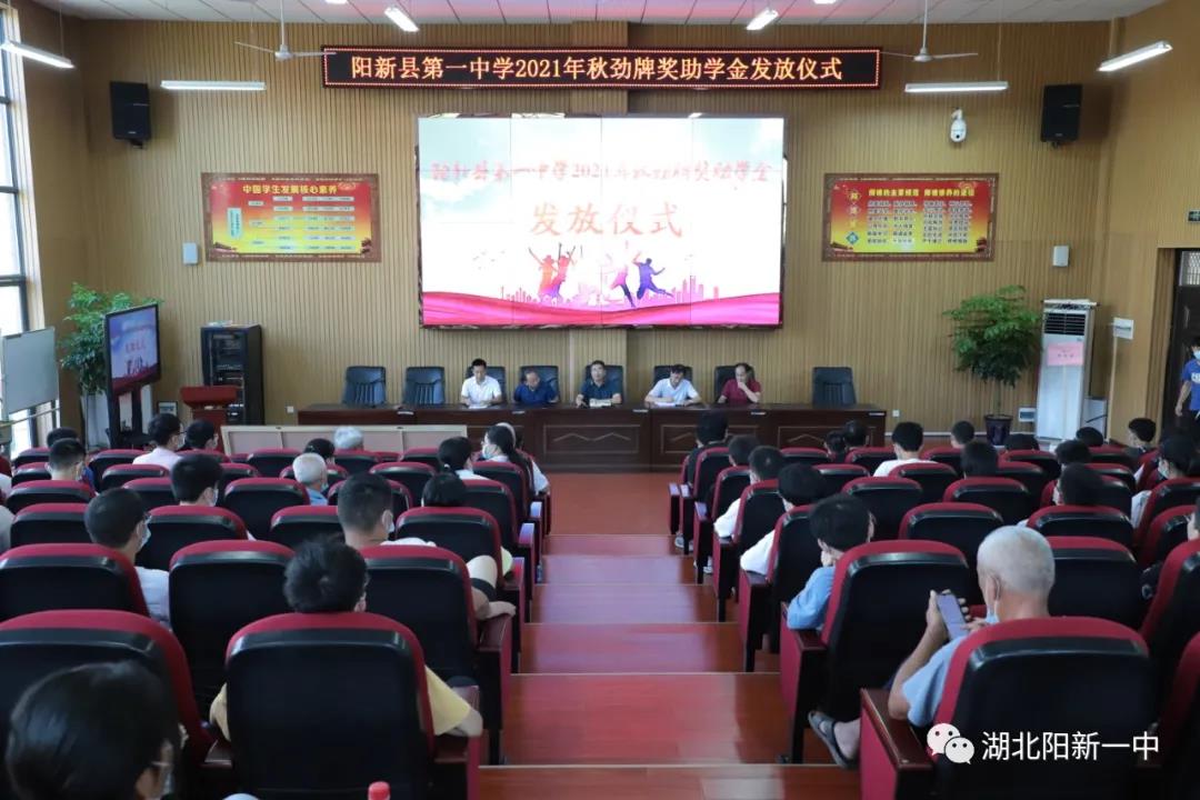 金秋助学献爱心,情深意浓显真情。9月1日上午,阳新一中2021年劲牌奖助学金发放仪式在明德楼学术报告厅举行,我校今年毕业的141名即将踏入大学校园的优秀困难学子每人获得2000-5000元资助。阳新一中党委书记、校长明道树,副校长梁师稳,分管2021届教学工作的李雁鸣同志参加发放仪式。明道树校长受劲牌公司委托为奖助学金获得者颁发总计30万奖助学金,仪式由梁师稳副校长主持。