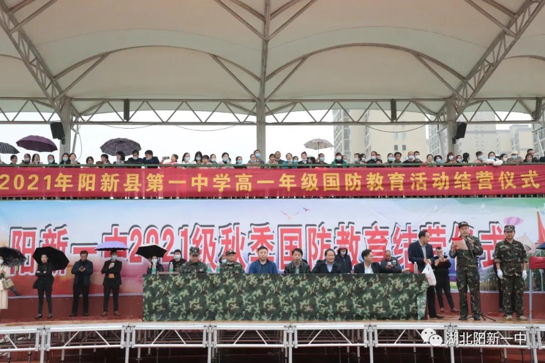 迷彩砺品质,热血铸军魂。10月5号下午,2021级全体高一新生在学校运动场举行了结营仪式。阳新一中党委副书记潘龙星,副校长柯美宝、梁师稳,高一蹲点领导李雁鸣及学生家长参加了活动。结营仪式由副校长徐宏斌主持。