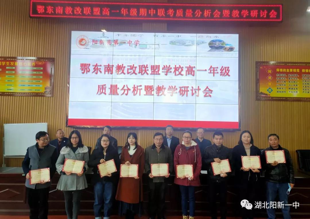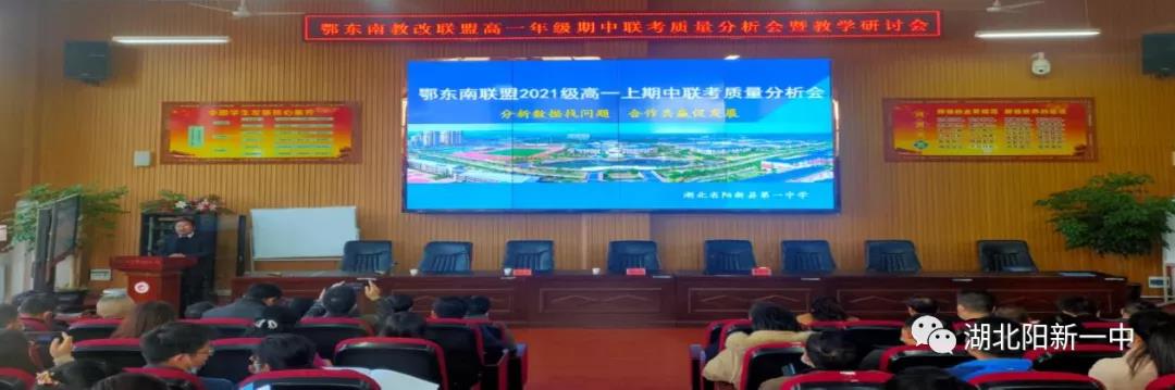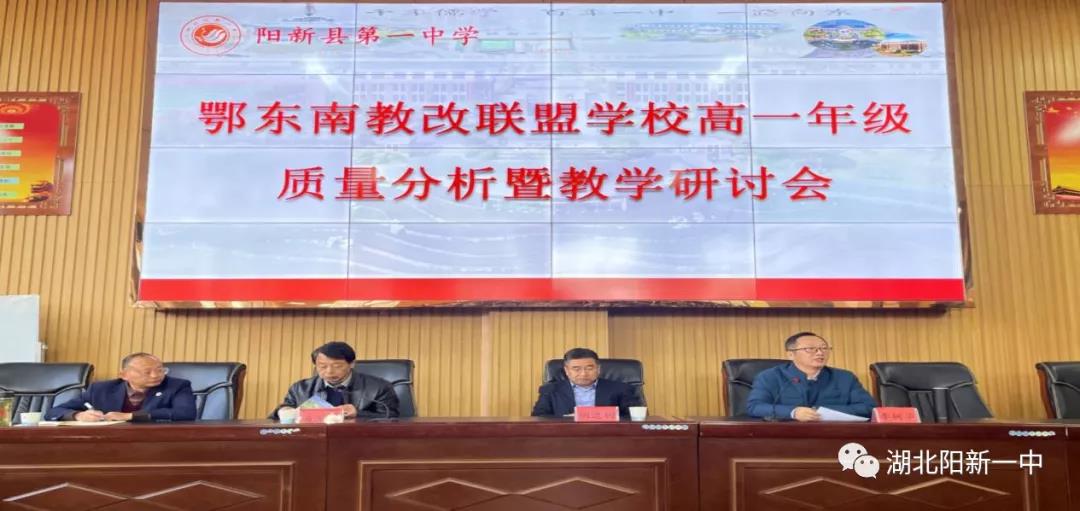 11月26日,在阳新一中第八届体育科技文化艺术节展开地如火如荼之际,鄂东南省级示范高中教育教学改革联盟学校2021年秋季高一年级质量分析暨教学研讨会在明德楼报告厅如期举行。黄冈中学、黄石二中、鄂南高中、孝感高中、鄂州高中、黄梅一中、蕲春一中、浠水一中、武穴中学、赤壁一中、阳新一中、麻城一中、罗田一中、武汉二中、红安一中、大冶一中、英山一中、团风中学、黄陂盘龙、黄陂前川等20多所学校的两百位代表参加会议。会议由高一年级蹲点领导李雁鸣主持。