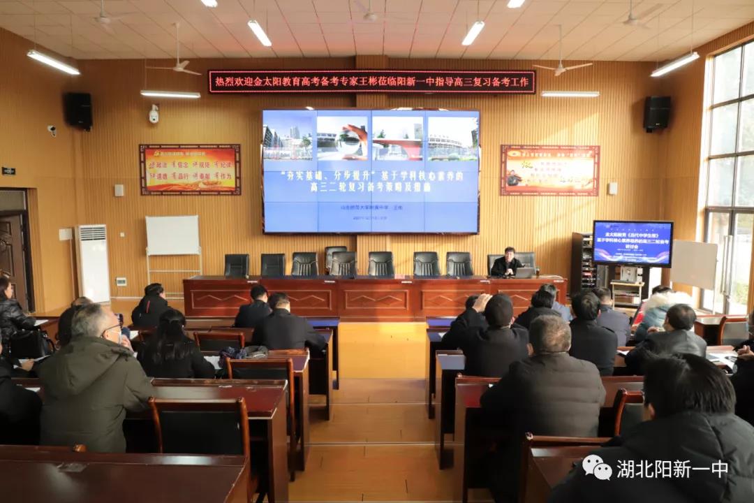为适应新高考改革,科学开展备考,提高教与学的效率,提升教学质量。12月13日上午,阳新一中在明道楼报告厅召开高三二轮复习备考研讨会,会议邀请了金太阳教育特邀高考备考专家,山东师范大学附属中学王彬老师作专题报告。报告会由高三年级主任陈洪星主持,校长明道树,副校长梁师稳、徐宏斌,李雁鸣、高三全体教师、高一高二备考组长及县内高中部分教师参加了报告会。