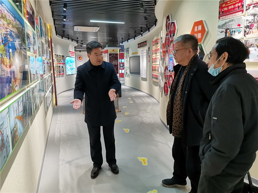 调研团参观了学校科技馆、阅览室、校史馆、书法室、数据中心等场所,查看了学校信息化设备设施情况。明道树校长向调研团介绍了学校办学思想,发展态势和信息化应用情况。