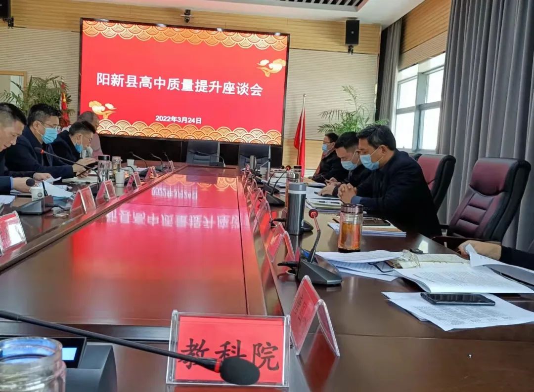 为提升我县高中办学品位和教育教学质量,增强我县高中教育可持续发展能力,3月24日上午阳新县召开高中质量提升座谈会。县政府副县长余正江出席会议并讲话,县政府办副主任伍齐树主持会议,县教育局党组全体成员、县教育局相关股室负责人、县教科院全体教研员、各高中校长、副校长及相关人员共计近50人参加会议,会议共五个议程。