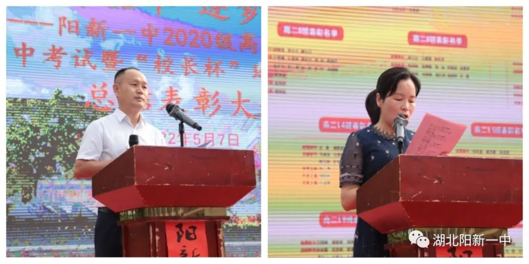 年级副主任陈松林宣读了鄂东南期中联考表彰物理方向前50名、历史方向前15名及各班第1名、智学之星、化学竞赛获奖名单。明校长、江副校长、家委会会长等为受表彰学生颁发荣誉证书、奖金和奖品。