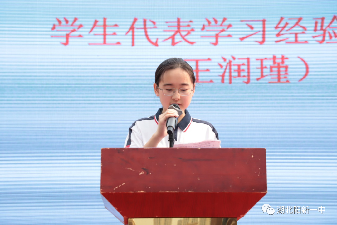 随后,鄂东南期中联考历史方向第一名高二(20)班王润瑾同学上台分享了“学习心态”的看法与感悟,认为要找到驱使自我前进的原动力,学会敢于承认问题,保证良好的身体状况、脚踏实地的行动。
