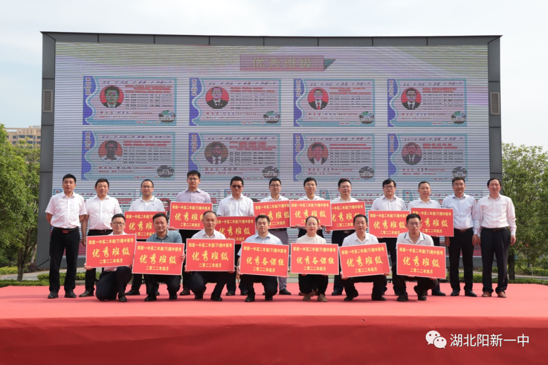 年级党支部书记蔡云秀宣读了鄂东南期中联考优秀班级和优秀备课组名单。明校长、江副校长、家委会会长等为受表彰班级和备课组颁发奖牌和奖金。