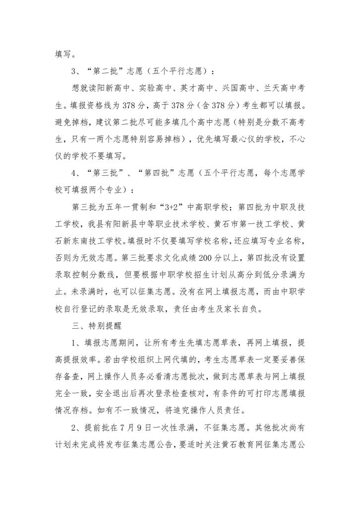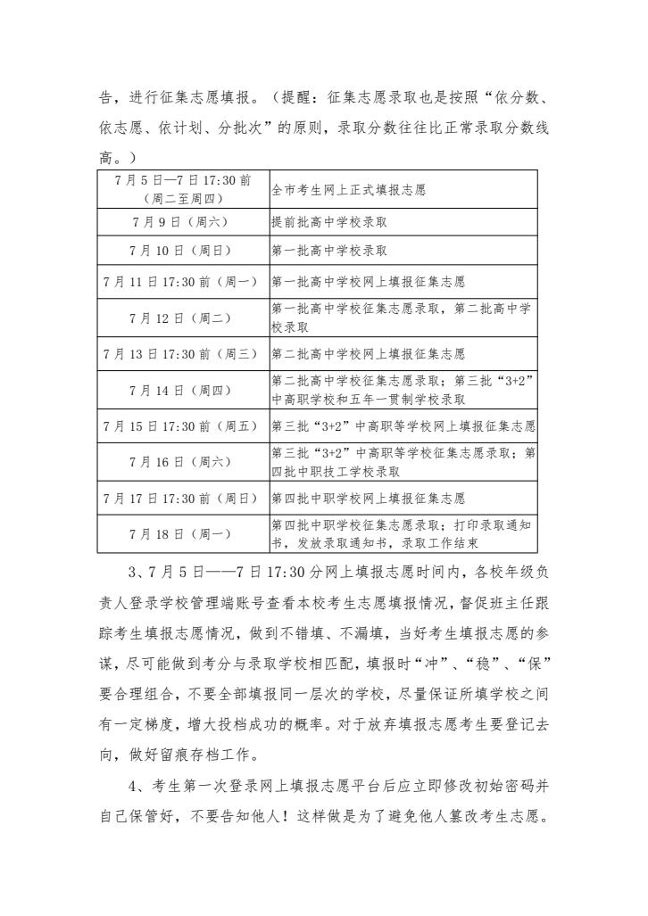 中考填报志愿及录取工作提示