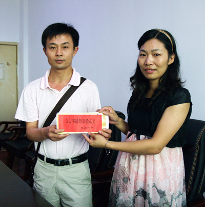 凝聚着阳新一中师生真情的10000余元捐款,送到县实验中学教师刘合勇老师手中,以帮助他身患白血病的5岁的儿子刘琛早日闯过生命旅途中的难关。