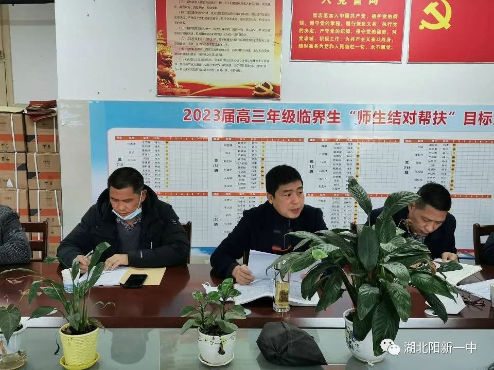 人到半山路更陡,水到中流当奋楫。为了抓好一轮收官阶段复习备考,也为二轮复习早谋划、早部署,努力实现市县教育局下达的高考目标,1月9日下午三点,2023届高三复习备考班主任、备课组长联席会议在高三年级组办公室召开。会议由阳新一中党委副书记、校长方长风主持,备考领导小组全体成员和高三全体班主任、备课组长与会。