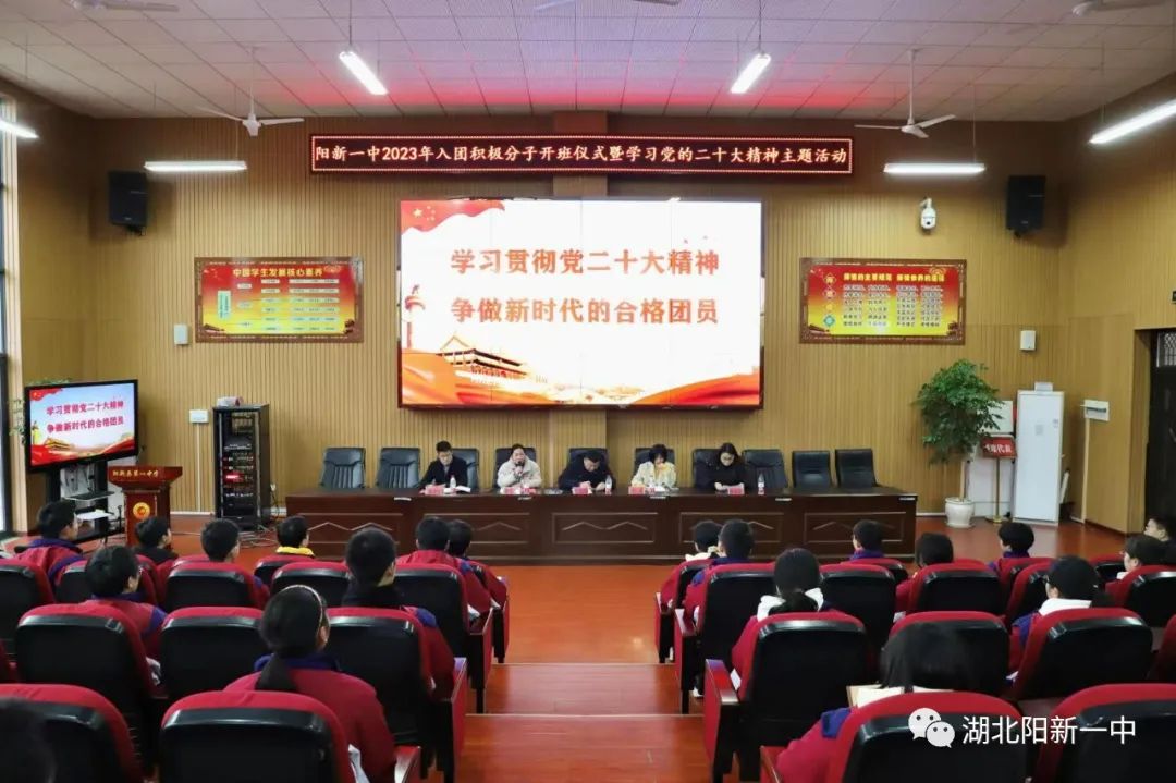 党建带团建,争先以创优。2月11日下午2:30,阳新一中举行2023年入团积极分子开班仪式暨学习贯彻党的二十大精神主题活动。出席活动的领导有团县委书记张明明,教育局团工委书记李笑,阳新一中分管德育副校长徐美姝以及百余名学生入团积极分子。