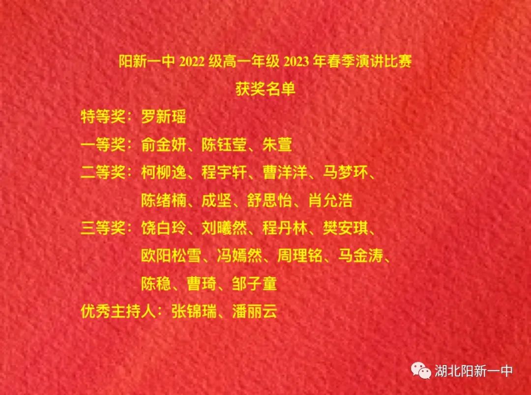 此次演讲比赛既是比拼实力的赛场,也是比拼风采的赛场。每位参加者从演讲比赛开始那一刻起,就已从起跑线出发,努力跑向终点,力争赛出好形象、赛出好成绩。同学们投入了极大的热情,这有利于我校学生展示实力和风采,更助力于展现阳新一中学子良好的精神风貌。