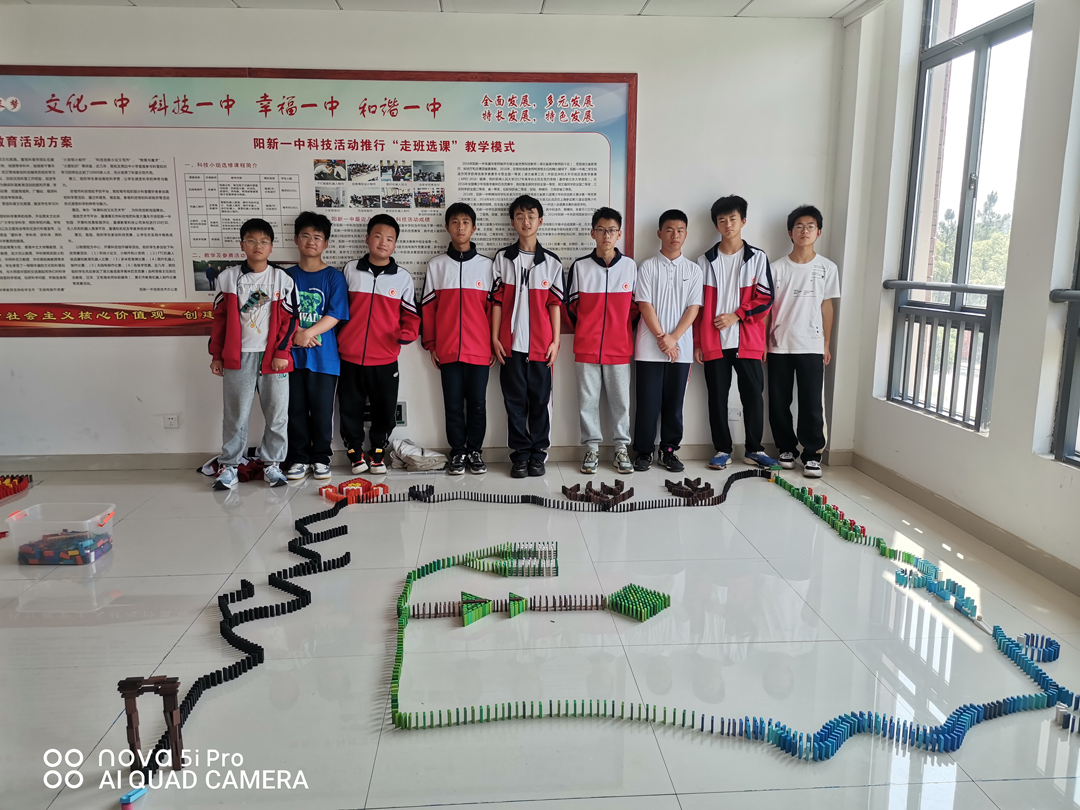 多米诺骨牌活动发源于中国,在欧美社会中则蔚为流行,是一种综合德智体美劳的运动,可以培养当代中小学生的团队协作能力,考验学生体力、耐心和意志力,提高学生动手能力。我校第九届体育科技文化艺术节多米诺骨牌创意设计比赛于421日下午在阳新一中校园科技馆二楼举行。各个战队前期准备充分,作品主题突出,特色鲜明,分别以环保、爱国、价值观为创意进行设计。在紧张、激烈而又漫长的比赛过程中圆满完成预设作品。评委从骨牌倒塌情况、图案设计和寓意解说等几个方面进行综合打分,依据平均分高低依次终决出特等奖为高一年级代表队,一等奖为清北代表队、高二年级代表队。