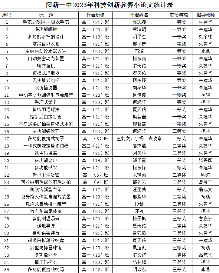 学生经过长时间的酝酿创作,共提交科技小论文50多篇。经学校评审小组评审,产生科技小论文一等奖15篇,二等奖11篇,三等奖9篇。
