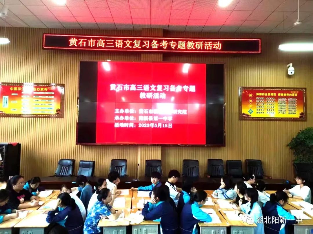 “五月榴花照眼明,枝间时见子初成。”石榴花开,红艳似火,为五月的人间增添了一份热烈的气息,背后是缓缓而来的一整个夏天,也是高考前的最后冲刺。为提高我市高三语文备考的精准度和有效性,加强校际之间的交流与合作,深入开展“研考”和“研题”,凝聚教学力量,助力高考冲刺,促进全市语文高考质量的整体提升,5月18日上午8:30,由黄石市教育科学研究院组织的“关于开展黄石市高三语文复习备考专题教研活动”在阳新一中明德楼学术报告厅隆重展开。本次活动由黄石教科院副院长、高中语文教研员肖龙洋老师主持,大冶市、阳新县高中语文教研员,全市各高中教研组长、高三备课组长及语文教师代表参与了本次活动。