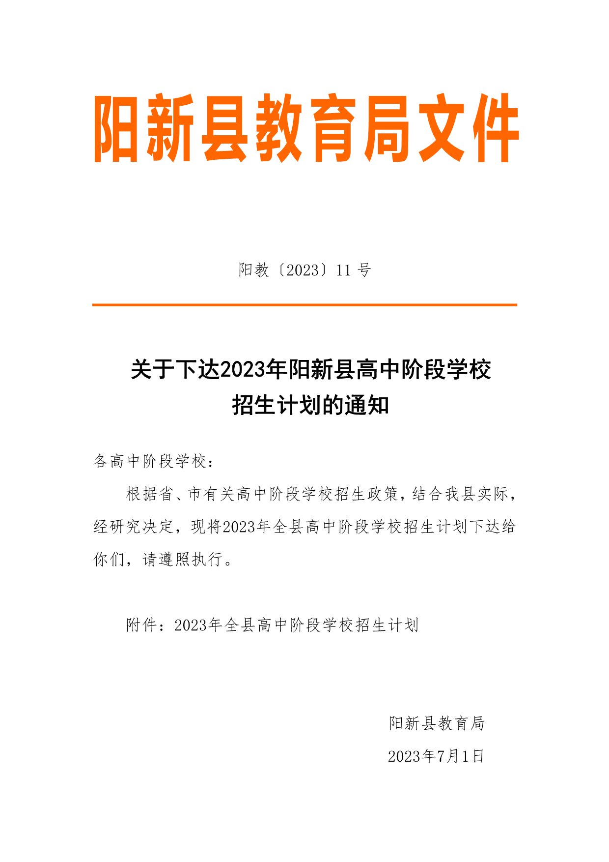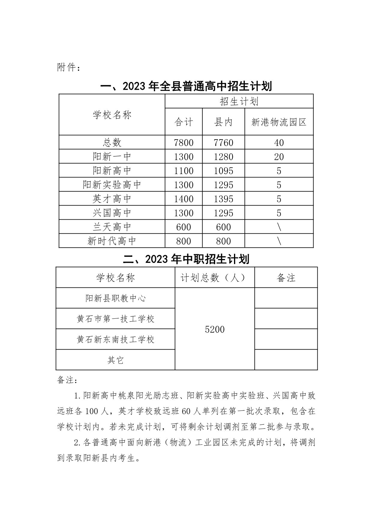 县教育局关于下达2022年阳新县高中阶段学校招生计划的通知