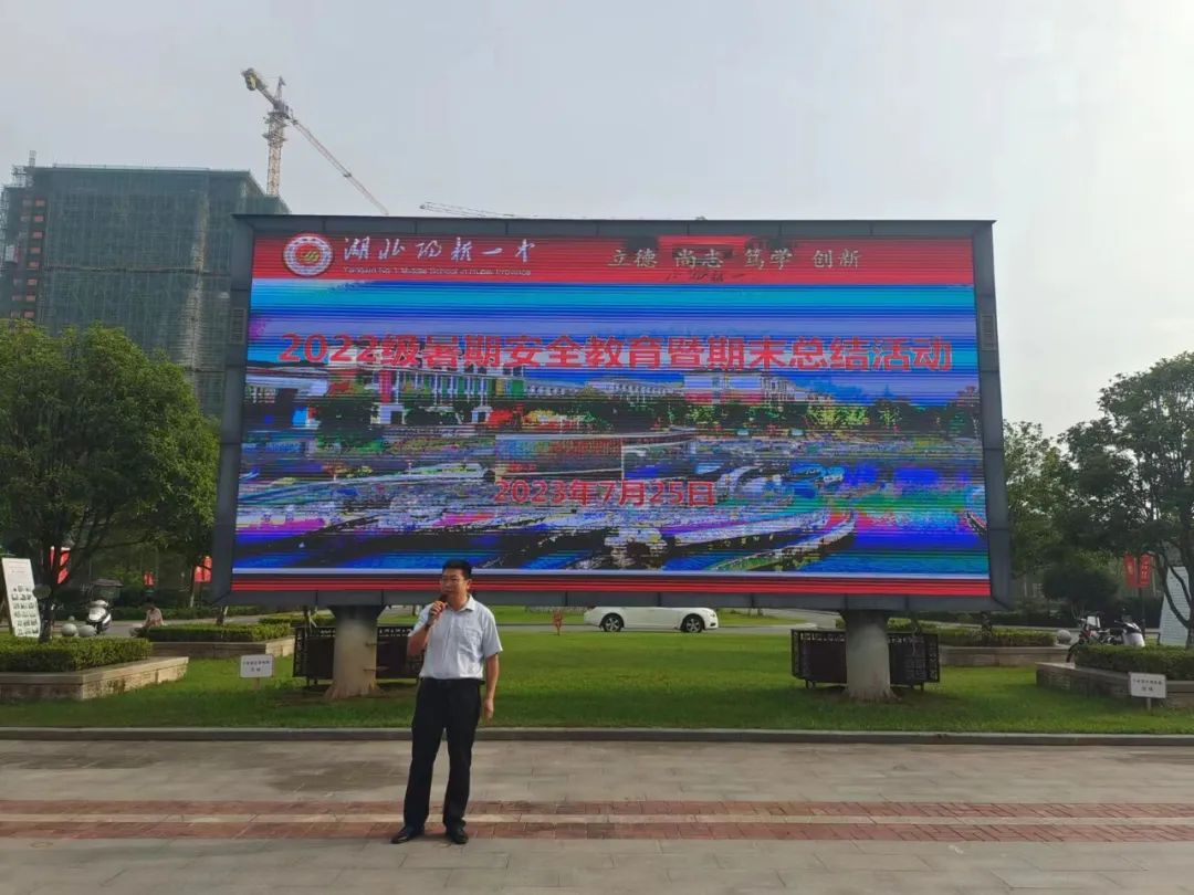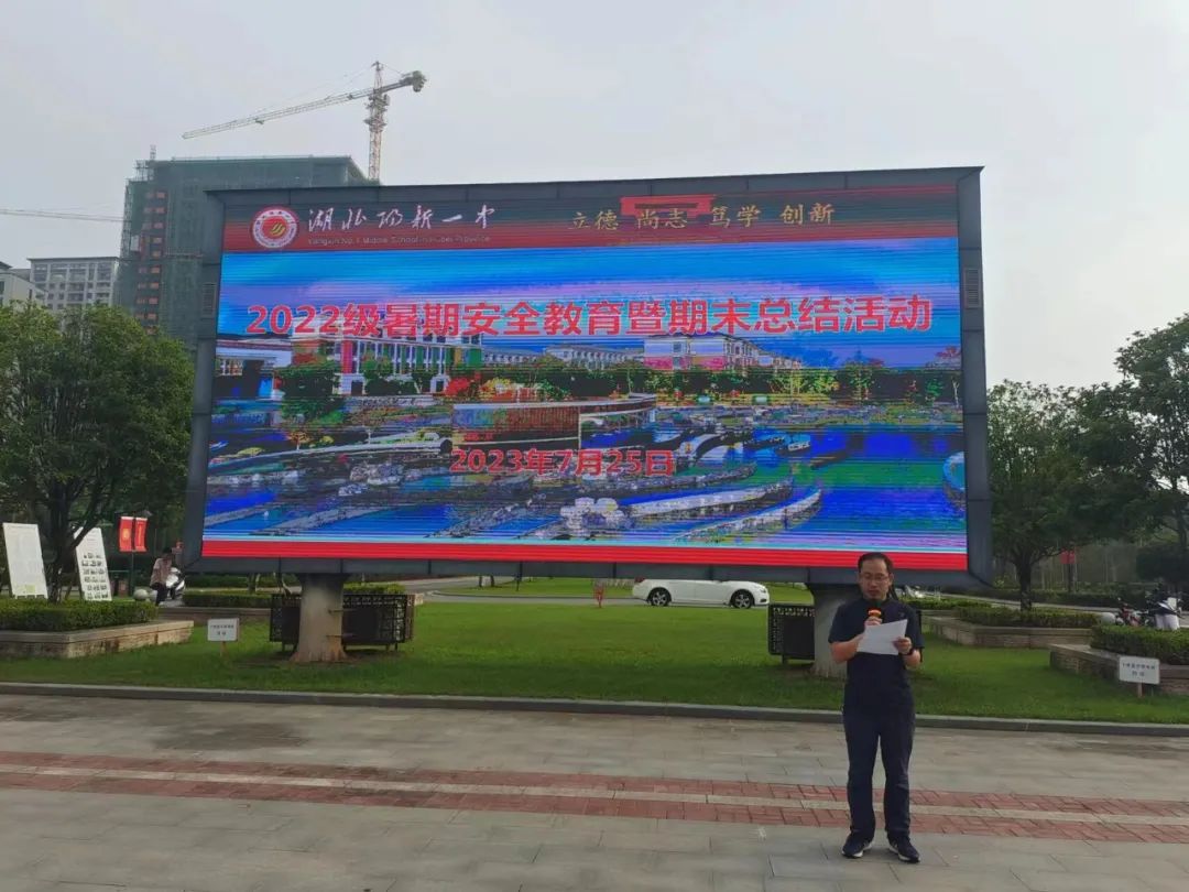 本学期的第一次晨训仍历历在目,转眼间,已从春意盎然走到花开半夏,紧张而忙碌的一个学期即将圆满结束。7月25日早晨,2022级高二年级在至善楼广场举行了“国旗下的讲话”活动,本次活动以暑期安全教育和期末总结为主题,由高二22班承办,高一年级支部书记艾锦芳主持,副主任舒长华作总结,高一年级全体学生和班主任参加。