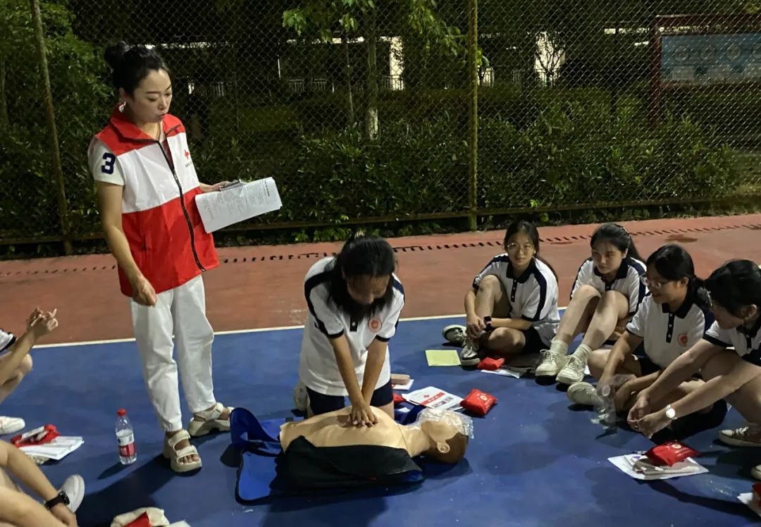 校团委组织学生到运动场,以小组形式,在县红十字会工作人员指导下,开展应急救护模拟演练。在指导老师带领下,同学们沉浸式学习应急救助知识。指导老师不厌其烦解释并示范动作要领。同学们热情高涨,争先恐后进行实操练习,相互提醒动作要领,不明白的地方第一时间向培训老师提问,力争精确掌握救护技能。通过一个半小时的实操培训,同学们较好的掌握了心肺复苏等急救技能,增强了防溺水意识,达到了活动预期效果。