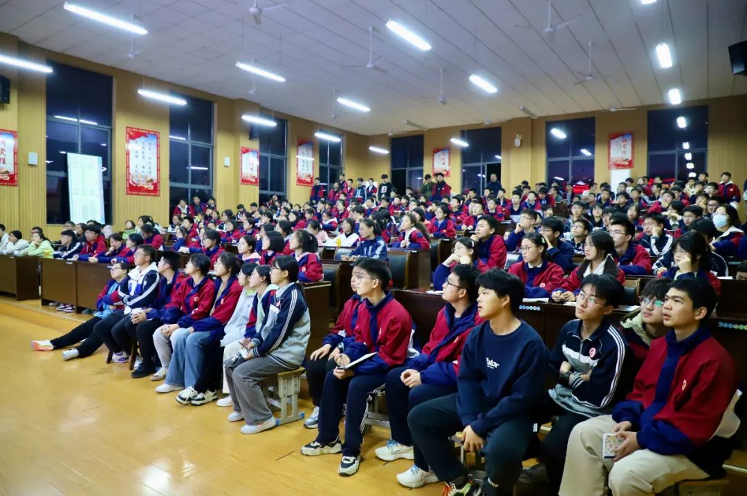 最后,谈汪博士寄语学弟学妹,希望学弟学妹们能够在余下的高中学习中脚踏实地、勤勤恳恳、不负时光、不负韶华,并且给了三条建议,呼吁大家为建设更好的一中和更好的祖国奋斗!全场掌声响起,热情高涨,良久也未消逝。