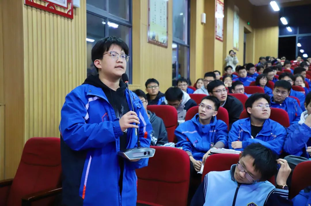 在交流互动环节,我校同学踊跃提问,张博士专业而幽默地进行解答,会场气氛热烈而融洽。直至晚自习放学的钟声响起,同学们还在排队等候提问。