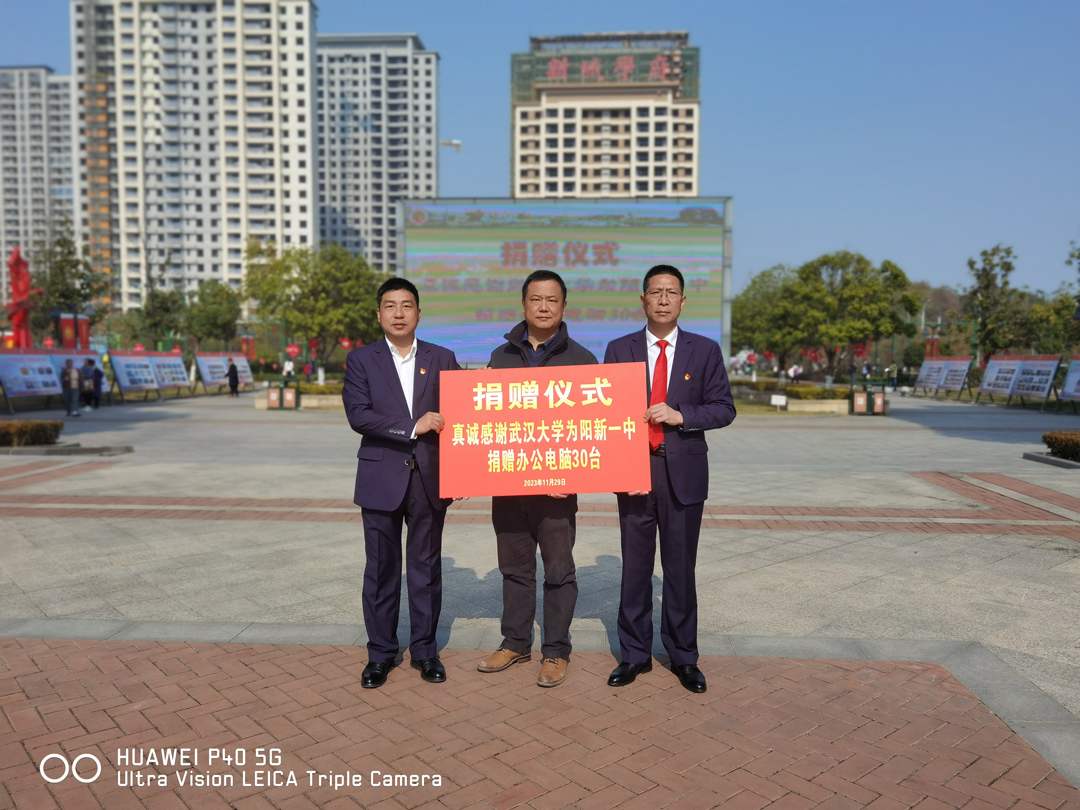 11月29日,阳新一中第十届体育科技文化艺术节开模式在学校运动场隆重举行,武汉大学姜鹏教授专程来校参加活动,并代表武汉大学为我校捐赠教师办公电脑30台。此次捐赠进一步缓解我校教师办公电脑短缺问题,促进学校教育信息化发展。阳新一中校长方长风、副校长江章令参加了捐赠仪式。